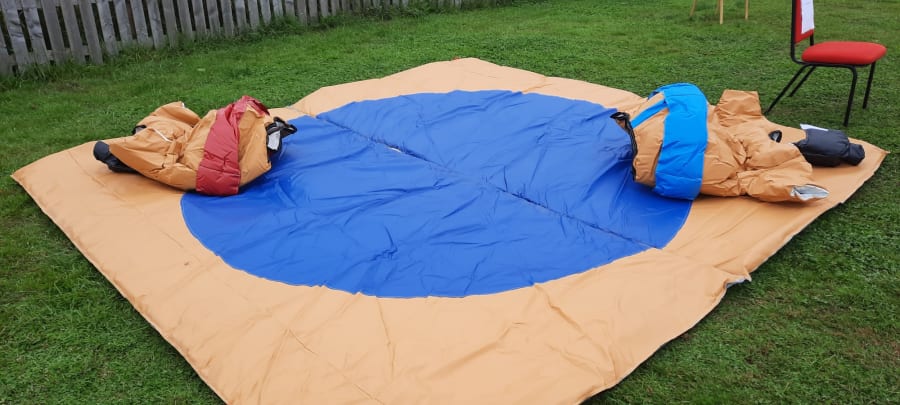 Children Sumo Suits have many hours of fun the aim is to push your opponent out of the ring and try pin them down. Its not as easy as you would think with such a padded suit. Its not just fun to for the participants its also a great laugh for the spectators.