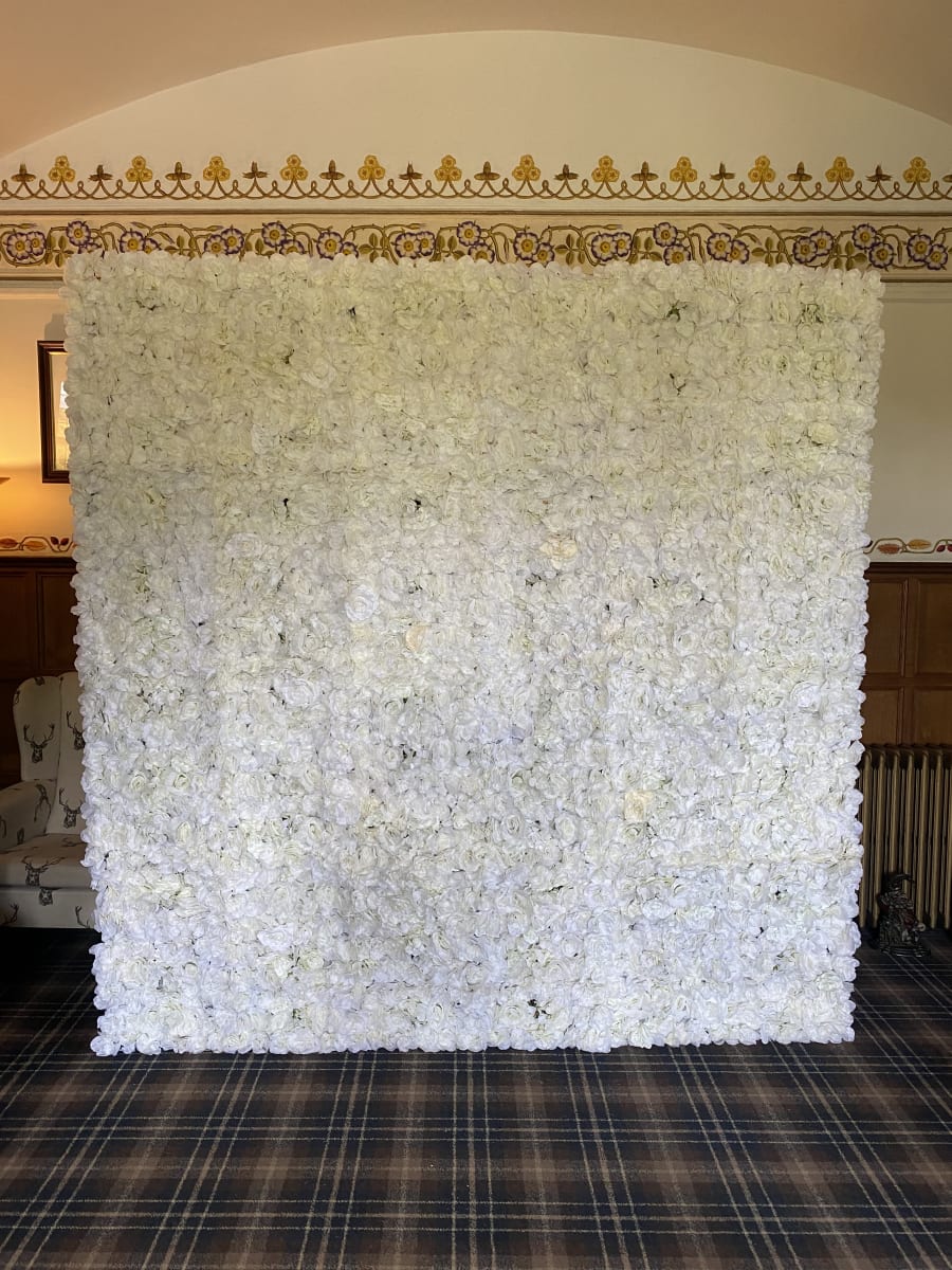 Our Gorgeous ROSE AND HYDRANGEA FLOWER WALL make the perfect backdrop. It takes up a small amount of floor space but provides a great back drop for your photos.